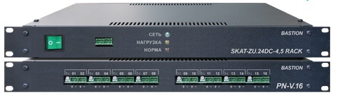 16 выходов по 0,5 А. Плавная регулировка выходного напряжения, регулируемый ток заряда АКБ; 5 информационных выходов о состоянии источника. Источник состоит из двух блоков высотой 1U каждый и предназначен для установки в стойки или шкафы 19".Характеристики SKAT V.16 Rack