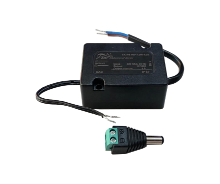FX-PS WP-18W-12/1.5: Уличный влагозащитный блок питания. Входное напряжение 90-264V, Выходное 12V, Номинальный ток 1.5A, Рабочая температура -30 +60С, Вес 0,29кг.Комплектация: Блок питания, паспорт, разъём питания.