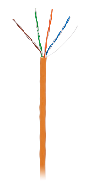 Кабель NETLAN U/UTP 4 пары, Кат.5e (Класс D), 100МГц, одножильный, BC (чистая медь), внутренний, LSZH нг(B)-HF, оранжевый, 1 бухта/305м
