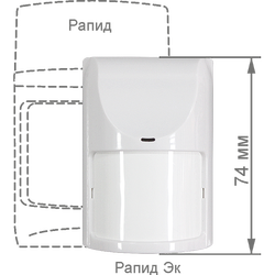 ИК извещатель с питанием по шлейфу сигнализации, компактный. 15 м. Антисаботажная зона. 70 мкА. Тампер.От –40˚С до +70˚С. КронштейнКомпактный извещатель охранный оптико-электронный инфракрасный пассивный «Рапид Эк» предназначен для обнаружения проникновения в охраняемое пространство закрытого помещения и формирования тревожного извещения увеличением тока в цепи шлейфа сигнализации (ШС).