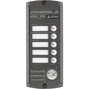 Видеопанель вызывная, накладная, 4-х проводная на 5 абонентов, с ИК подветкой до 0,6м, матрица 1/3", 1000 ТВл, 12В, угол обзора 75 (гор.) 55 (верт.). Рабочий диапазон t -50…+50. Габариты 170х70х20 мм. Встроенный Proxy считыватель.Антивандальная, водостойкая