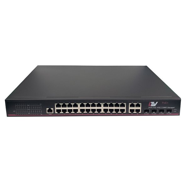 РоЕ-Коммутатор дальность до 100 м, 250 м при CCTV, RACK, 24xRJ-45 c PoE, 4xCombo RJ-45/SFP uplink, грозозащита 3 кВ, 24x1000/24x10 Мб/с CCTV, 4x1000 Мб/с, -20…55°C, 220 В (AC)Характеристики LTV-3S24G4C-MP