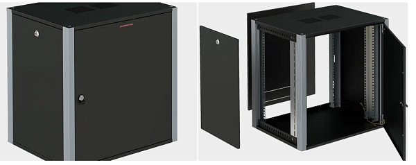 Шкаф телекоммуникационный настенный 19" 12U; дверь металл; IP20, 600x450x585mm(ШхГхВ); цвет черный(RAL 9004/RAL7000)Характеристики SYSMATRIX 12U WP 6412.920 Шкаф коммутационный