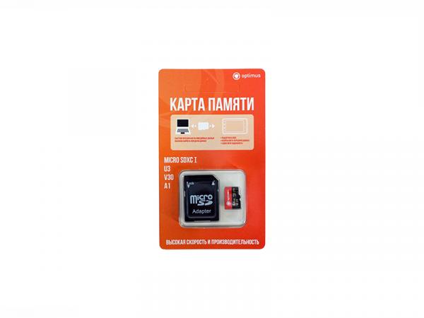 Micro SDXC, объем памяти 64 гб, запись до 40 МБ/с, чтение до 90 МБ/с, Рабочая температура от 25°C до +80 °C, Комплектация:Карта памяти – 1 шт., SD адаптер – 1 шт.Характеристики Optimus MicroSDXC 64Gb